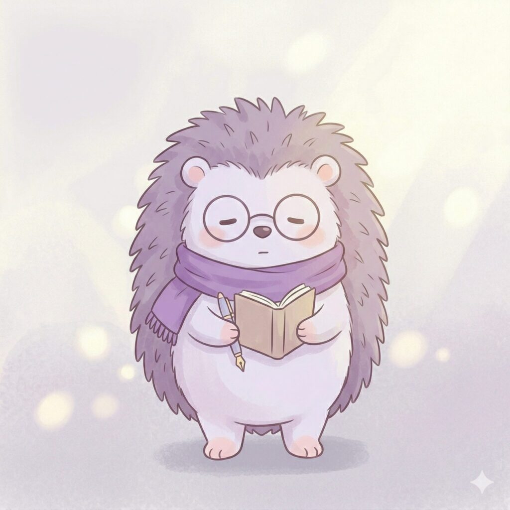 🔒 ひみつ:ふわころを主人公にした物語を、こっそり書き続けています。誰にも見せたことはありません。そして古い木の図書館に、誰かが悩んでいるときにちょうどいい本をそっと置いているのも、とげとんです。