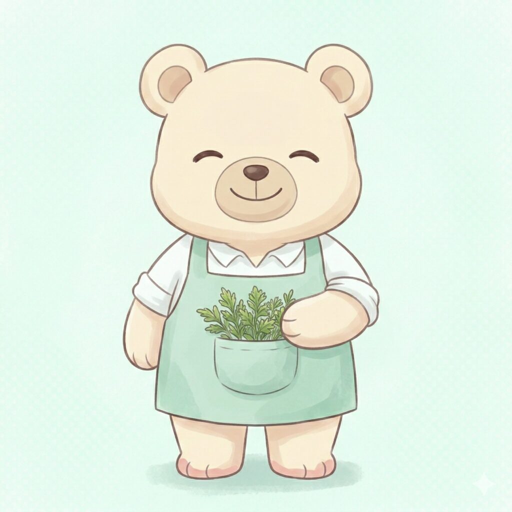 森の中心にあるきのこカフェ「ぽっこり」の店主。毎朝、焼きたてパンの香りを森中に漂わせながら、誰かが困っていないかをそっと気にかけています。笑うと目が細くなってほぼ閉じてしまうのが、もちくまの愛らしいところ。
